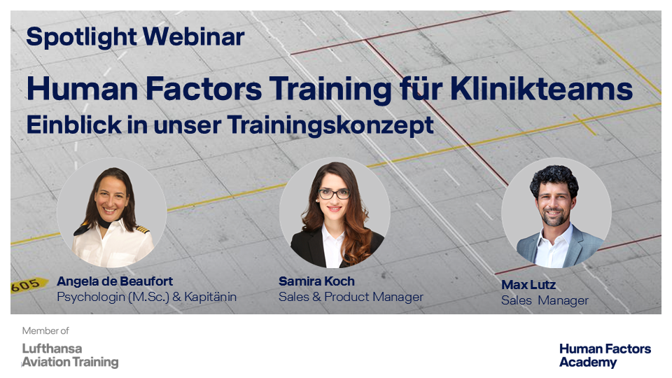 In diesem kompakten und praxisnahen Webinar zeigen wir Methoden aus der Luftfahrt, wie Klinikteams sicherer, offener und widerstandsfähiger werden. Sie bekommen konkrete Einblicke von einer Pilot:in in unser Trainingsangebot der Human Factors Academy.